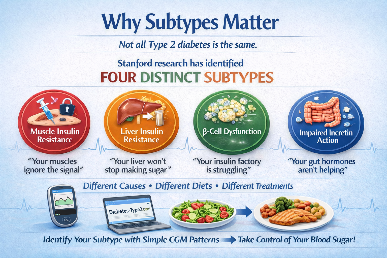 By identifying your specific diabetes subtype using simple CGM pattern analysis or our advanced assessment tools, you can select a diet tailored to your metabolic needs, address the underlying causes of glucose imbalance, and manage your blood sugar more effectively.